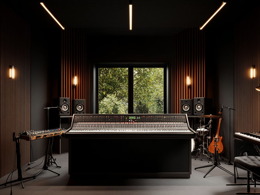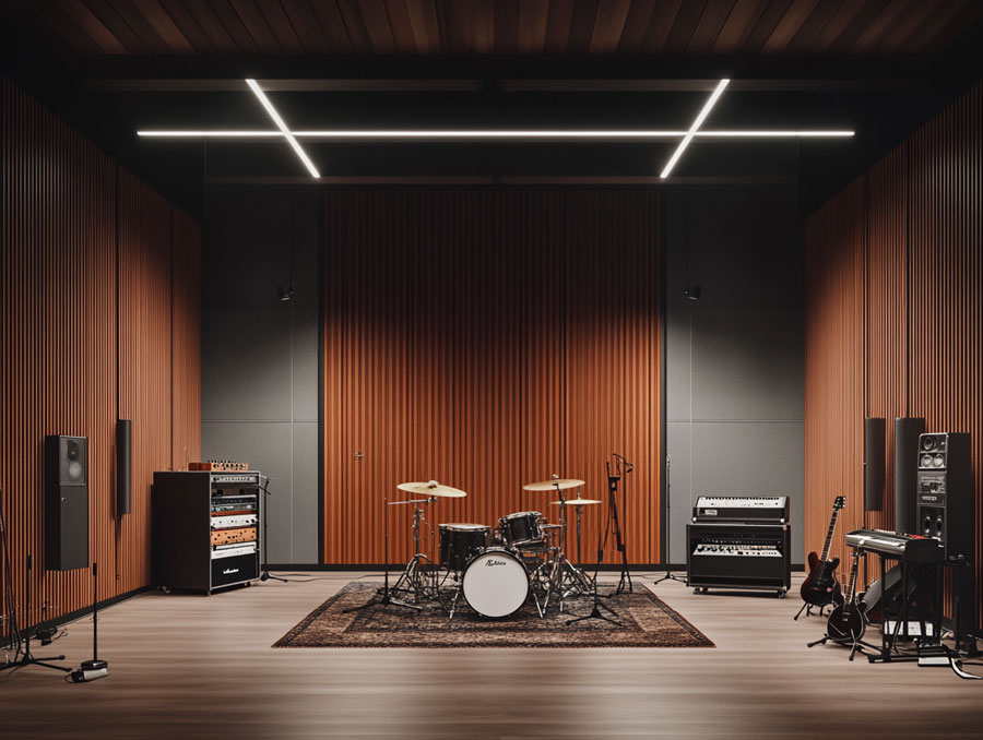 60 m² pensés pour allier précision, confort et performance acoustique, avec une isolation et un traitement sonore haut de gamme, réalisé par Red House.